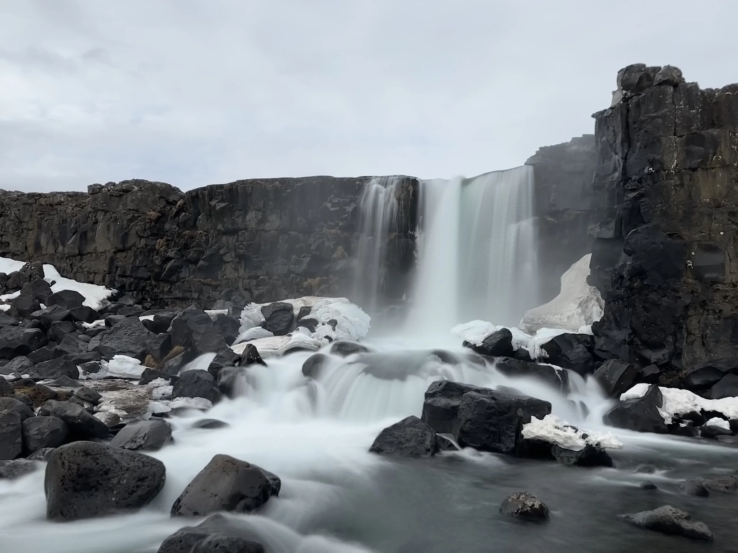 Thingvellir National Park – Hike the Öxarárfoss Trail and see, first-hand, the Mid-Atlantic Continental drift as you walk between the North American and Eurasian tectonic plates to a 13m waterfall.