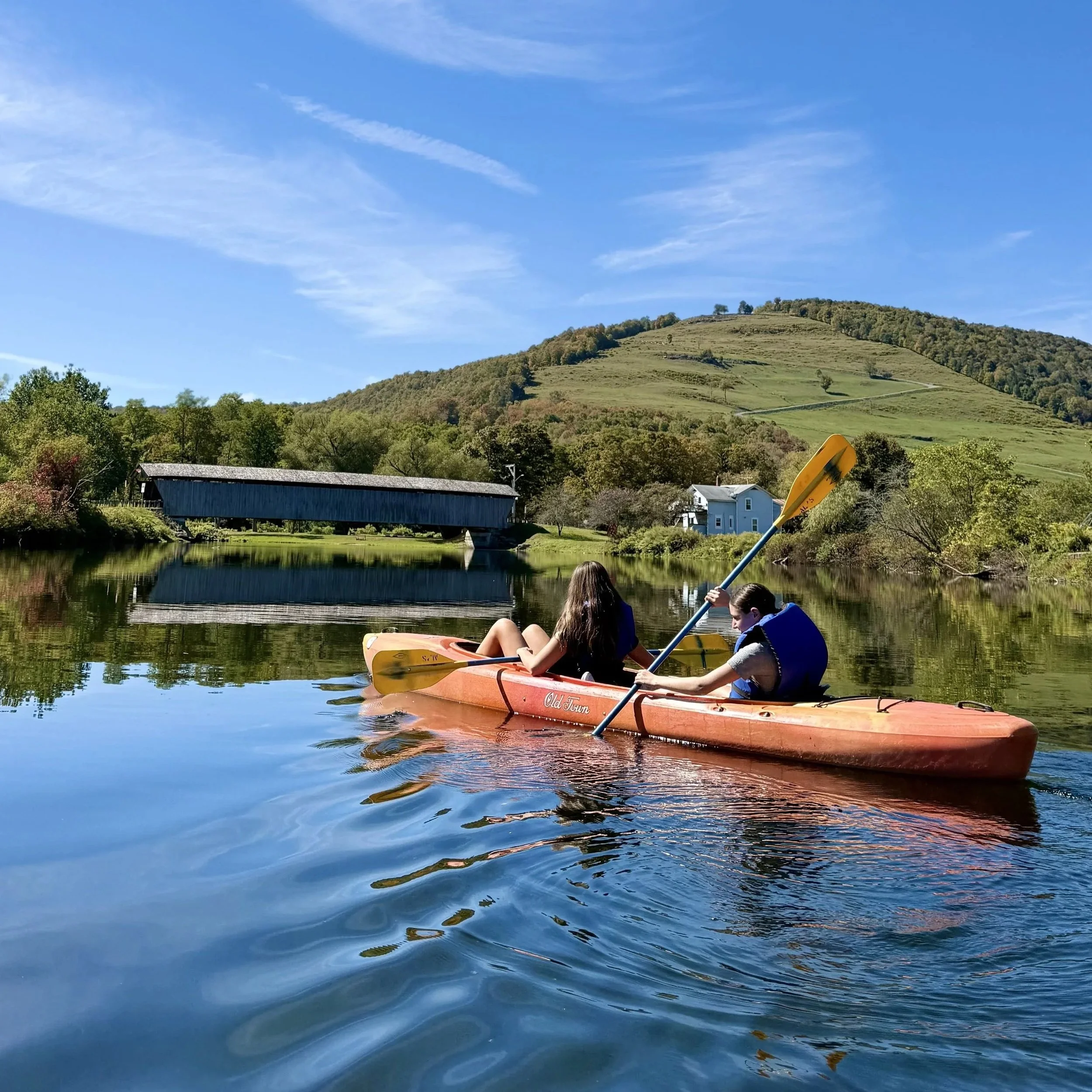 As you paddle along this calm, quiet section of the Delaware, take in the gorgeous scenery, rolling hills, and covered bridge. It feels like an authentic, small-town experience. Check the weather and water levels before you plan your trip. The Delaware River's water levels are regularly managed to help control droughts, flooding, and local water supplies.